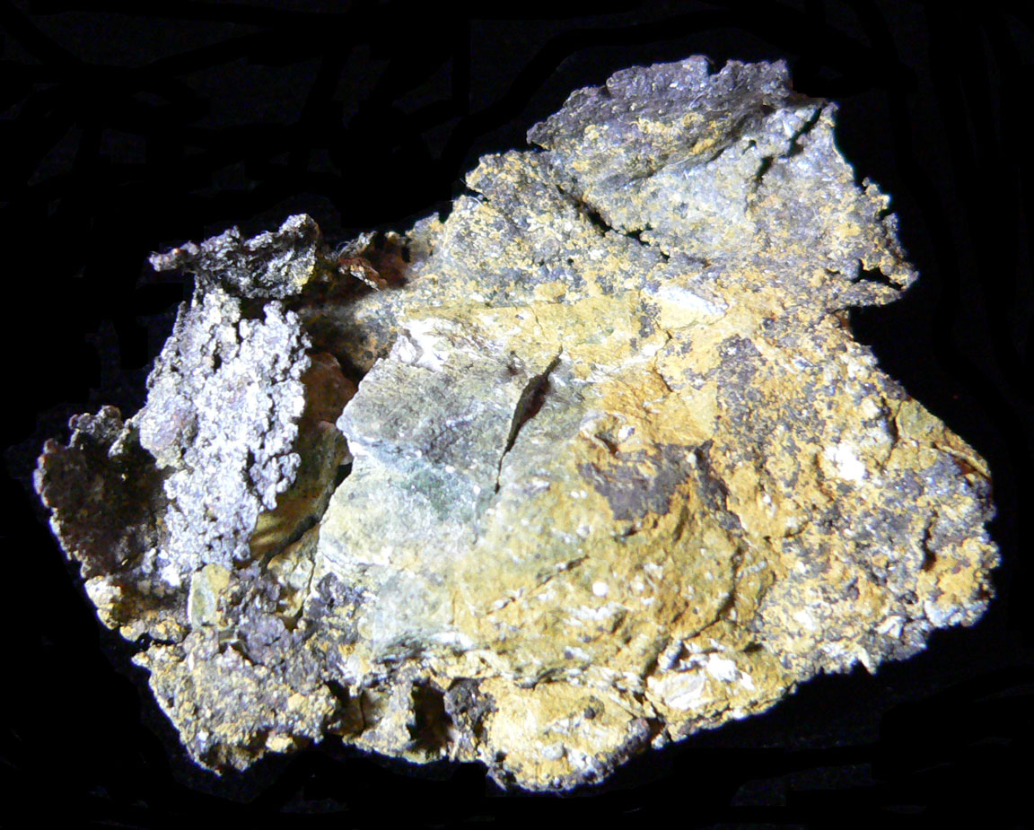 Copper covered with chalcocite and other minerals, in this case sulfur? Mineral # 532 Mineral Park Mine Wallapai Mining District, Mohave County, Arizona 3.5 x 4 x 0.5 cm $ 20 |