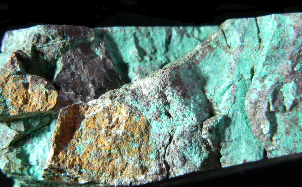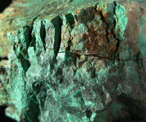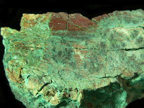 Franke Mine Ore Specimen # 3000 Here is a natural, uncut, side showing more malachite and/or the beginning of green atacamite. |
