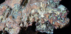 Kearsarge Amygdaloid Copper Mineral 1992 A close view of the other side of this specimen clearly showing the copper under a covering of rock fragments |