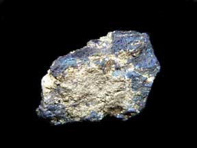 Covellite Mineral # 702 Leonard Mine, 3859' level, Butte, Silver Bow County, Montana 2.8 x 2.5 x 1 cm $ 69 Covellite was the primary ore the Butte copper mines. This sample was mined in the early 1970's towards the end of this famous mining district. |