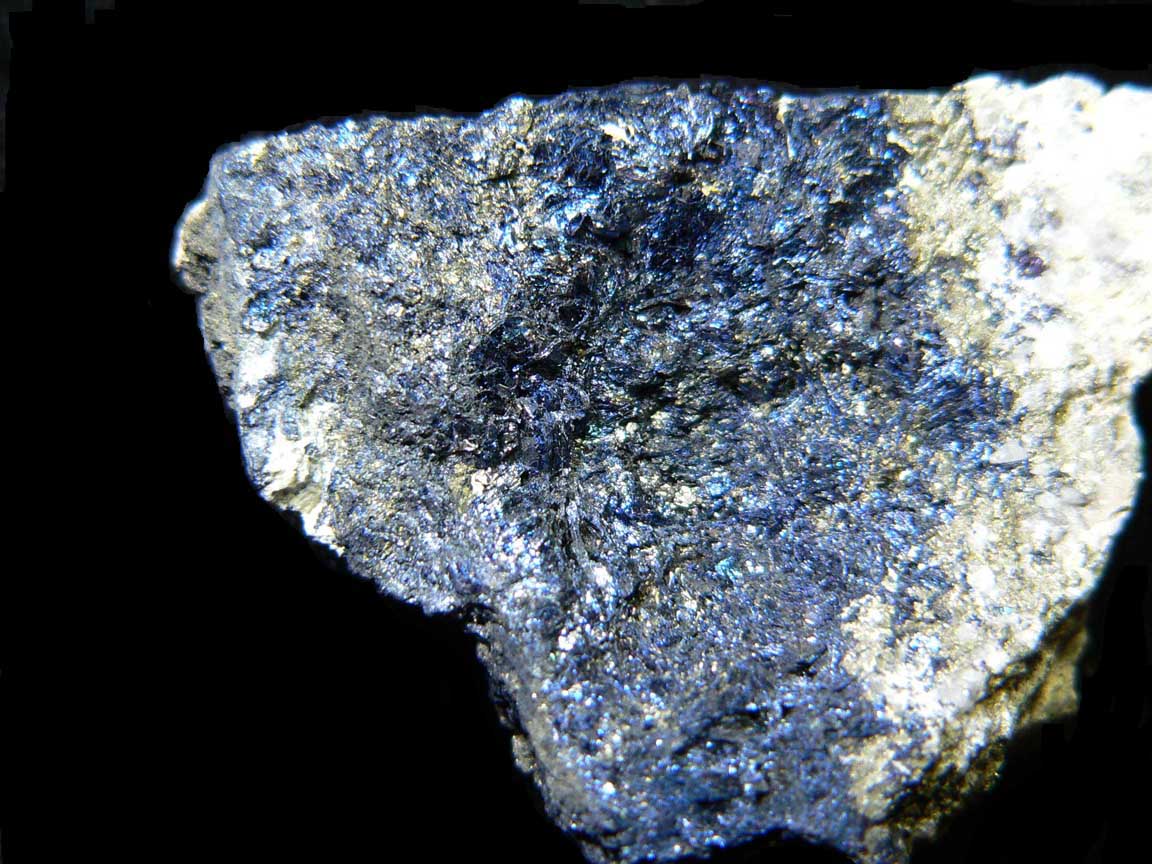 Covellite Mineral # 702 A close-up view of the specimen above showing Covellite throughout much of the stone |