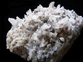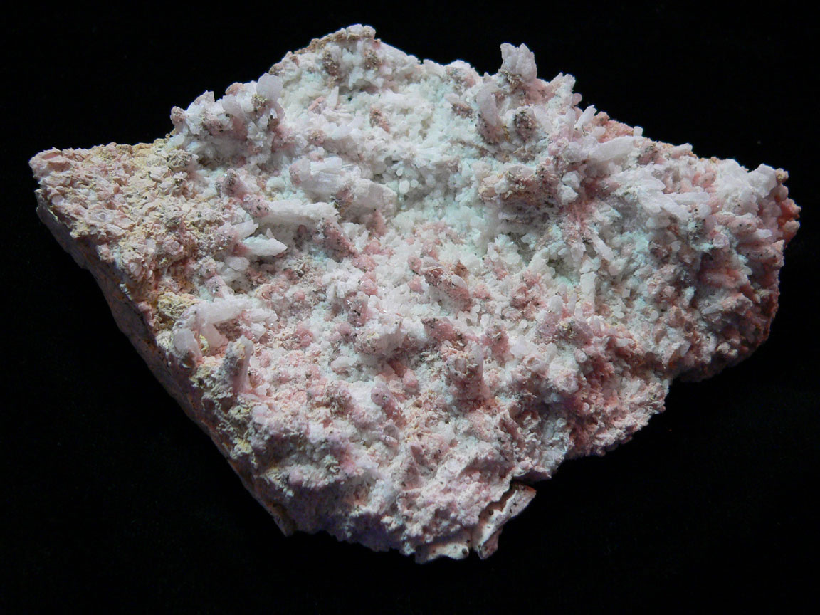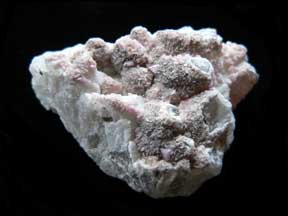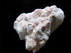 Rhodochrosite Mineral # 705 Emma Mine, Silver Bow County Montana 10 x 9 x 2 cm $ 165Crystalline Rhodochrosite with a light pink to rose coloration; the botryoidal appearance is not seen here as it covers quartz crystals |