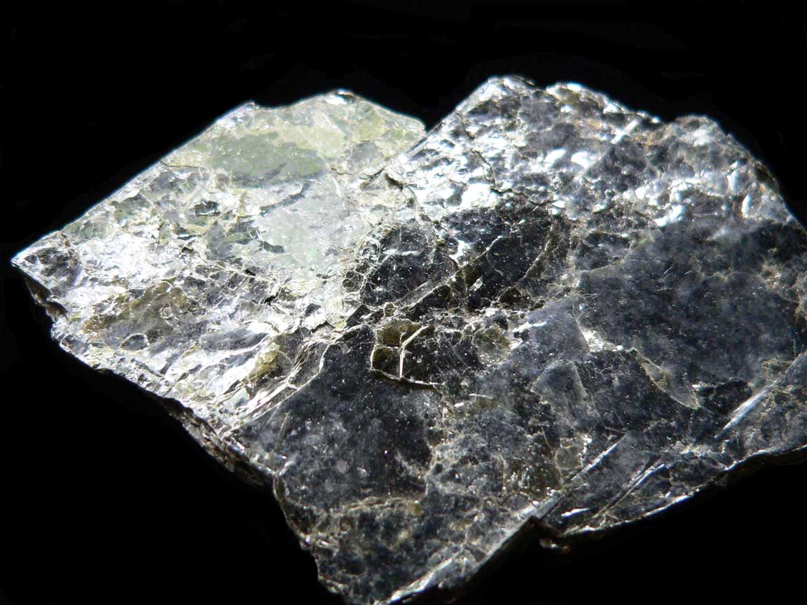 Vermiculite Mineral # 712 This is specimen is actually a collection of thin, black "mica" plates which take on other colors as the light source is moved |