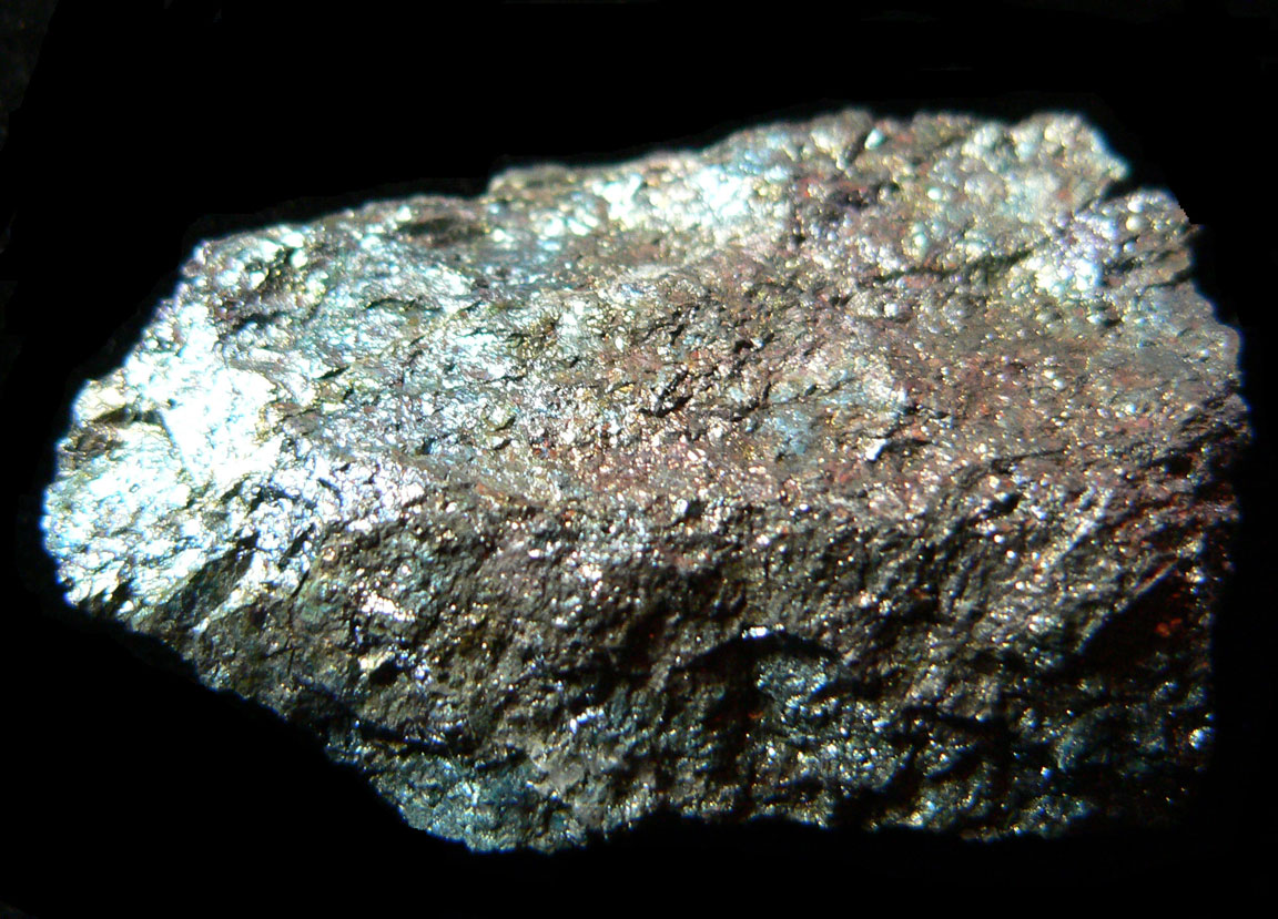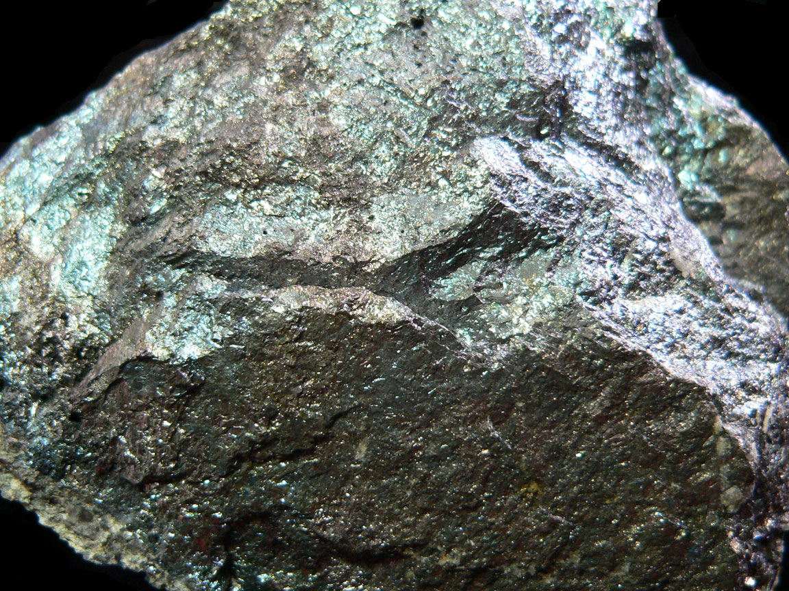 Bornite Mineral # 700 Leonard Mine, Butte, Silver Bow County Montana A close-up view of the Bornite specimen above; this mineral is so reflective that it is difficult to photograph |