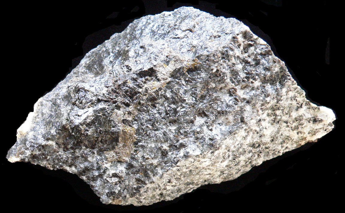 Stillwater Gabbro, JM Reef, PGE ore Mineral # 708 Click to see a close-up view showing the sulfides which make this ore valuable. |