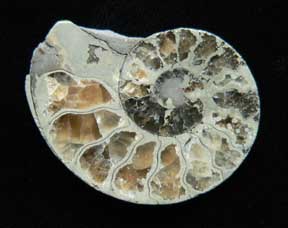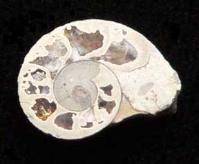Mollusca 11 a Class Cephalopoda Subclass Ammonoidea Order Agoniatitida Genus Agoniatites Meek (1877) Ammonite: Agoniatites 3.2 x 3.9 cm Midelt, Morocco, Cretaceous Ammonite cut in half showing internal structure $ 25 |