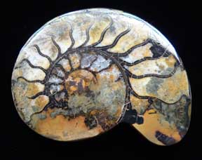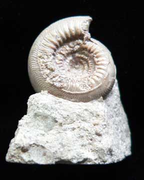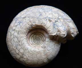 Mollusca 7d Phylum Mollusca Class Cephalopoda Subclass Ammonoidea Family Amaltheidae Genus Pleuroceras Hyatt, 1868 Ammonite: Pleuroceras spinatum 4 x 5 cm Untersturmig, Germany, JurassicSpecimen is pyrite replaced as above; slightly smaller; preservation not as precise $ 36 |