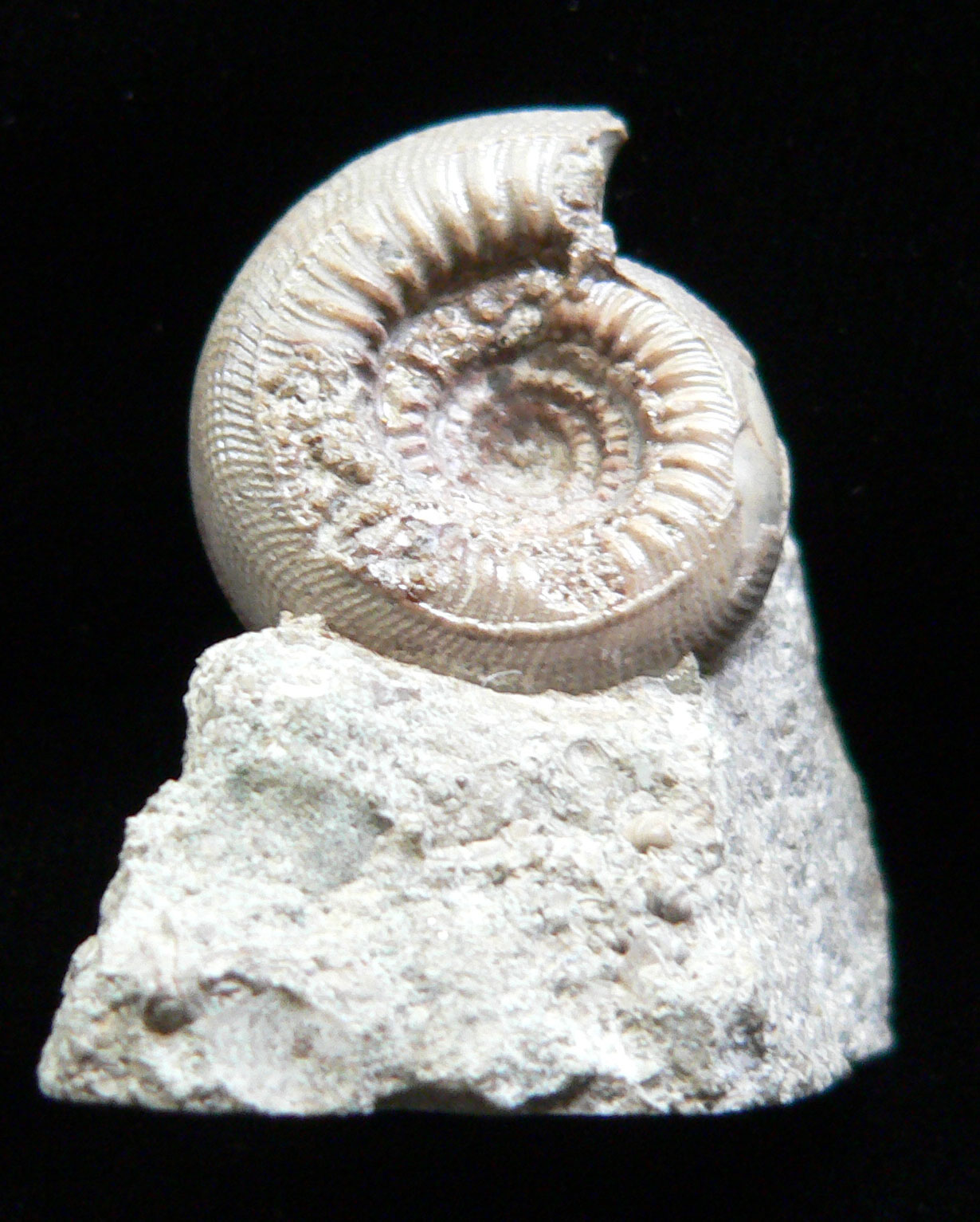 Mollusca 7b Phylum Mollusca Class Cephalopoda Subclass Ammonoidea Family Amaltheidae Genus Pleuroceras Hyatt, 1868 Ammonite: Pleuroceras spinatum Untersturmig, Germany, Jurassic 3.2 cm Same as above, except only a single specimen $ 50 |