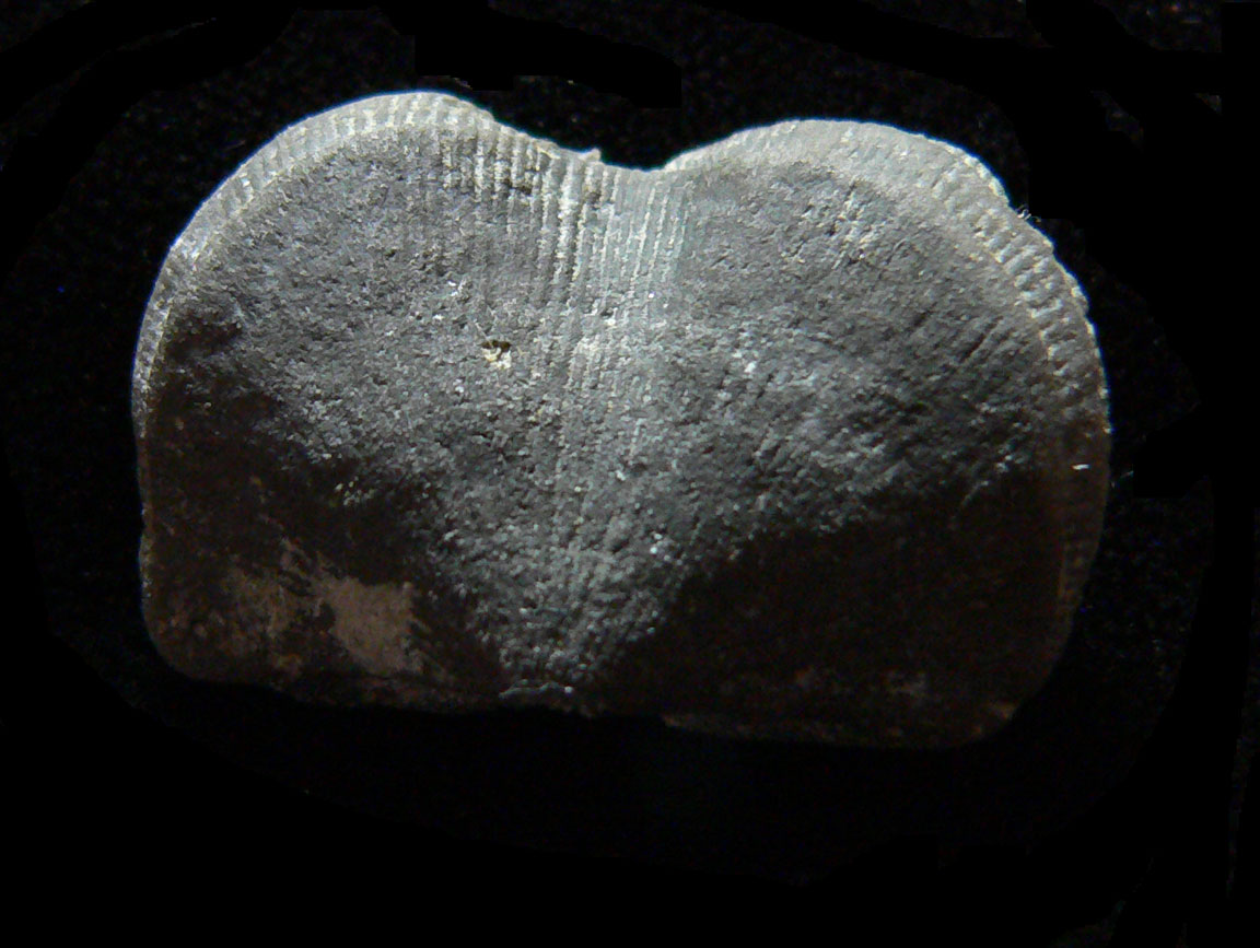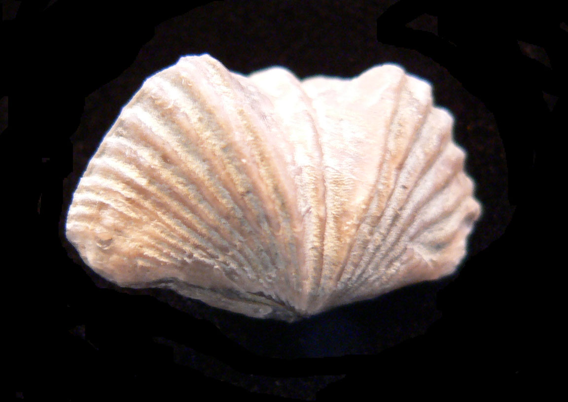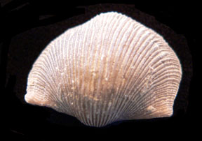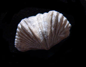 Specimen 2202 Orthid Brachiopod Another view of specimen above with another light source; only top half of shell is present |