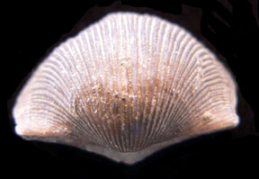 Specimen 2201 Strophomenid Lamp Shell Holtedahlina sulcata Hall & Clarke 1892 1.5 x 1 cm Richmond Gropup, Whitewater Formation Cincinnatian Formation, West end of Lake Cowan, Ohio $ 7 |