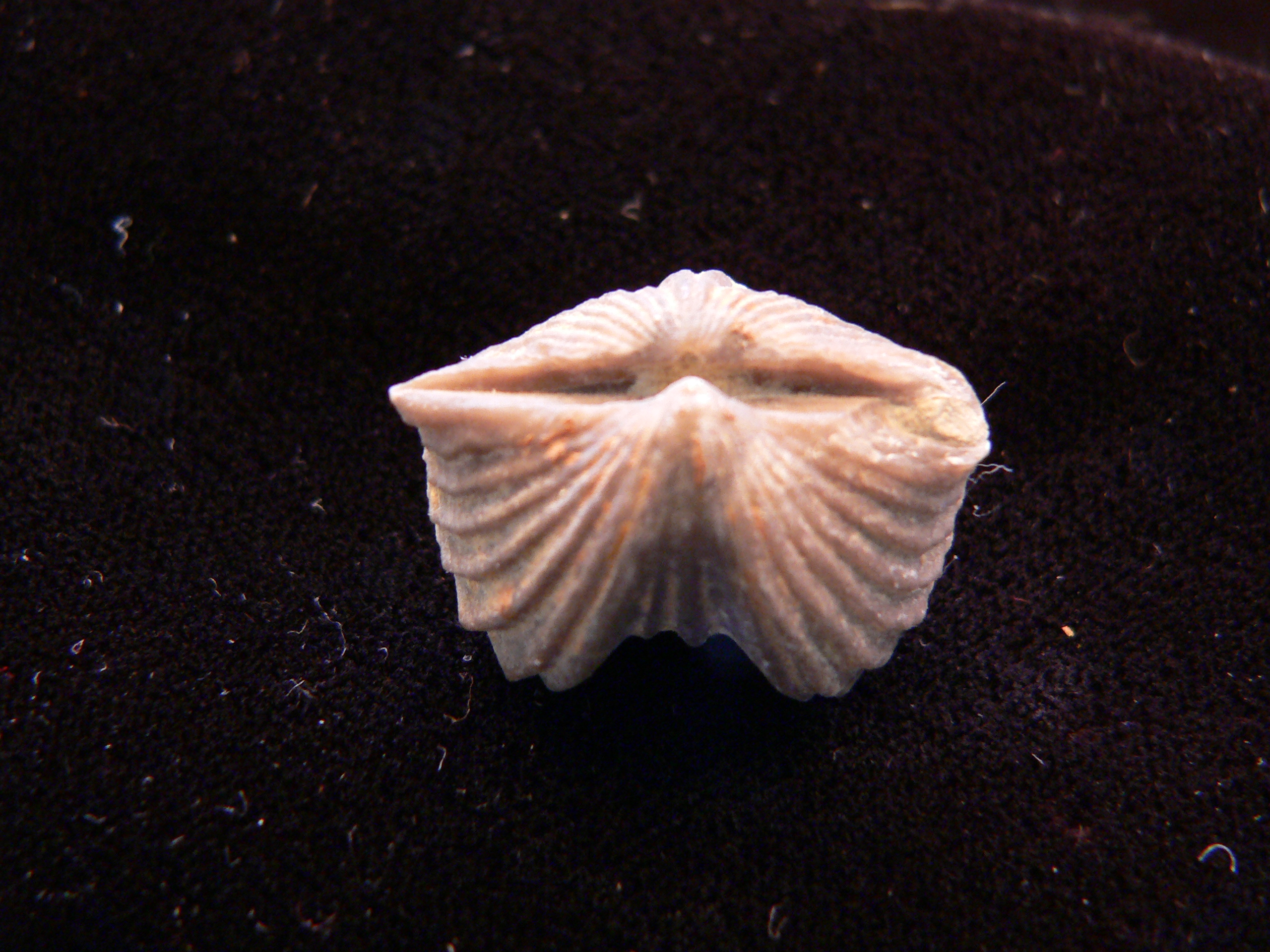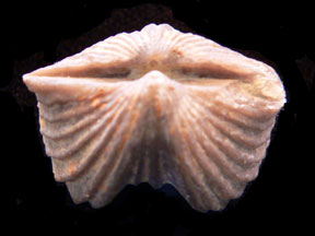 Specimen 2202 Orthid Brachiopod Hebertella insculpta (Hall, 1847) 2.5 x 1.4 cm Richmond Gropup, Whitewater Formation Cincinnatian Formation, West end of Lake Cowan, Ohio $ 5 |