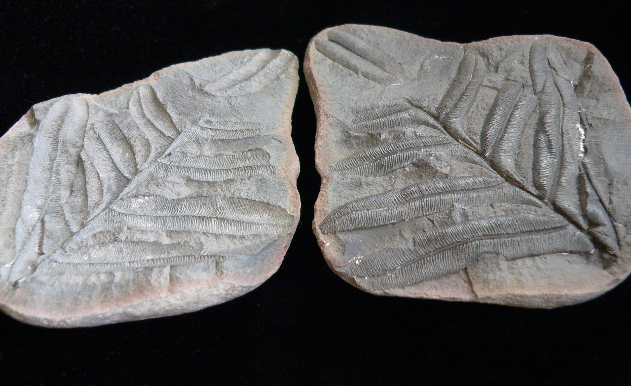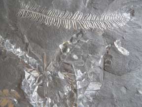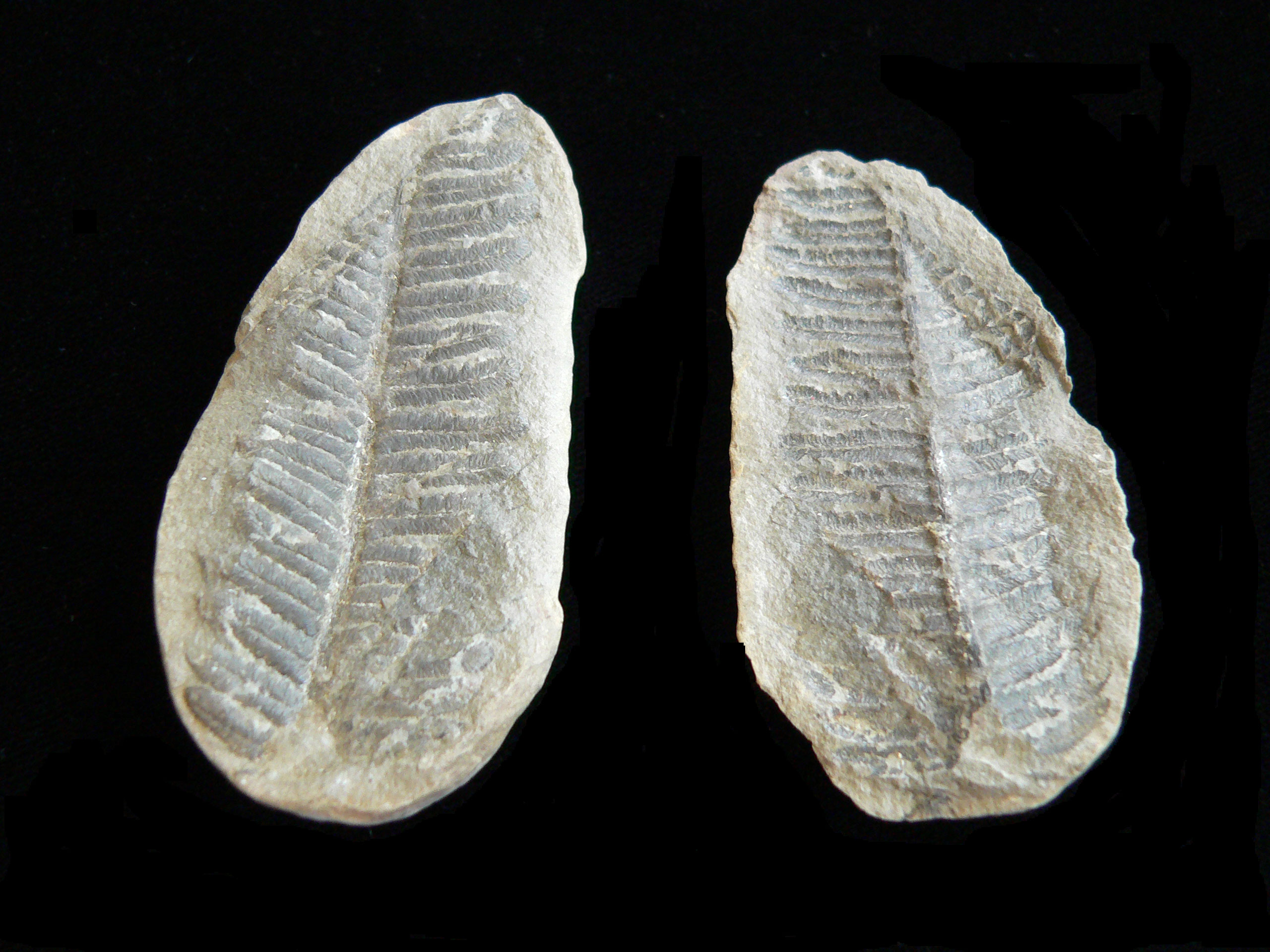 Alethopteris 3.5 x 7.5 cm nodule broken to show frond on one side and imprint of frond on other side |