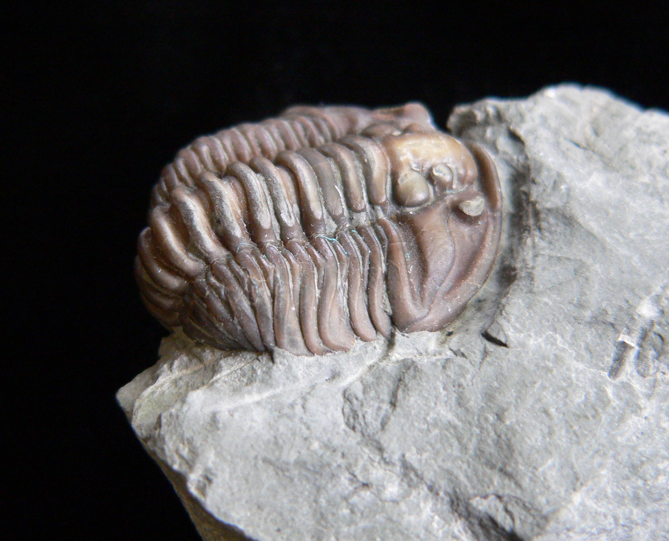 Phacops crassituberculata another closer view of this trilobite The slight color variations between the Arth 19a and 19b specimens is just different lighting techniques. They all have nearly the same actual coloration. |