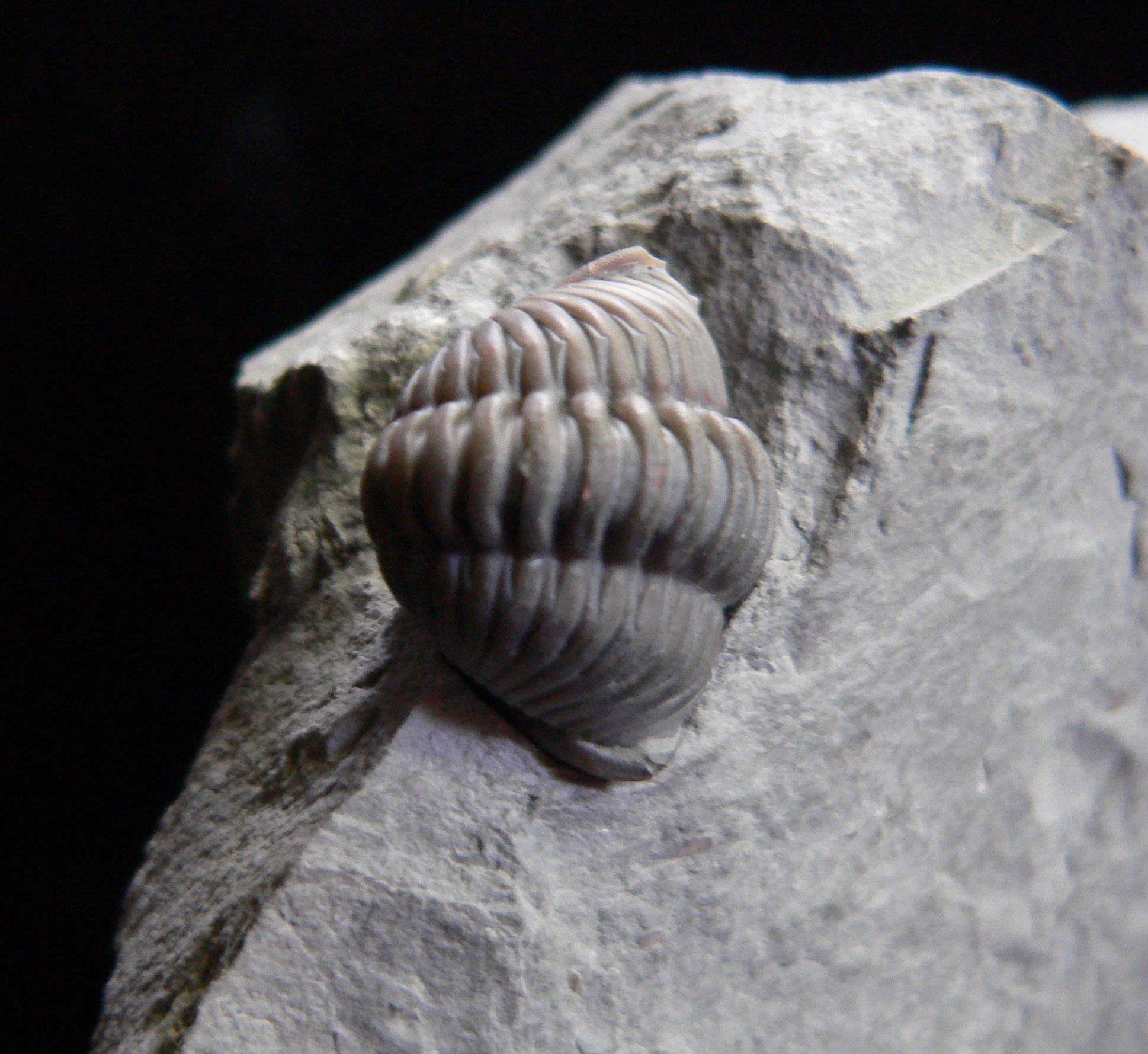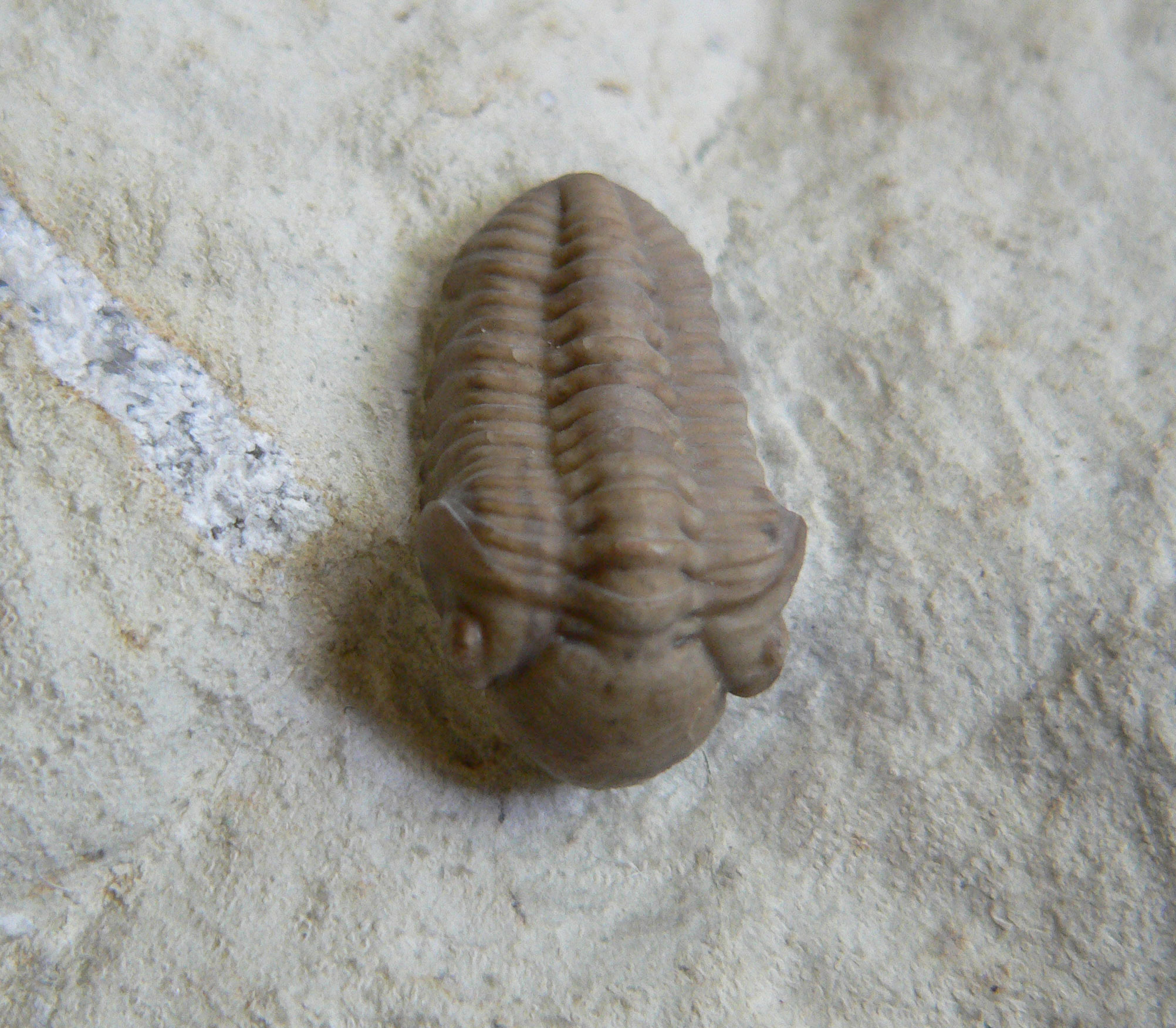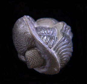 Trilobite, enrolled Flexicalymene meeki Class Trilobita Walch 1771 Order Phacopida Suborder Calymenina Superfamily Calymenoidea Family Calymendine Burmeister 1843 size: 1.6 x 1.9 cm Waynesville Fm, Greene County, Ohio Ordovician Trilobite eyes imperfect $ 50 |