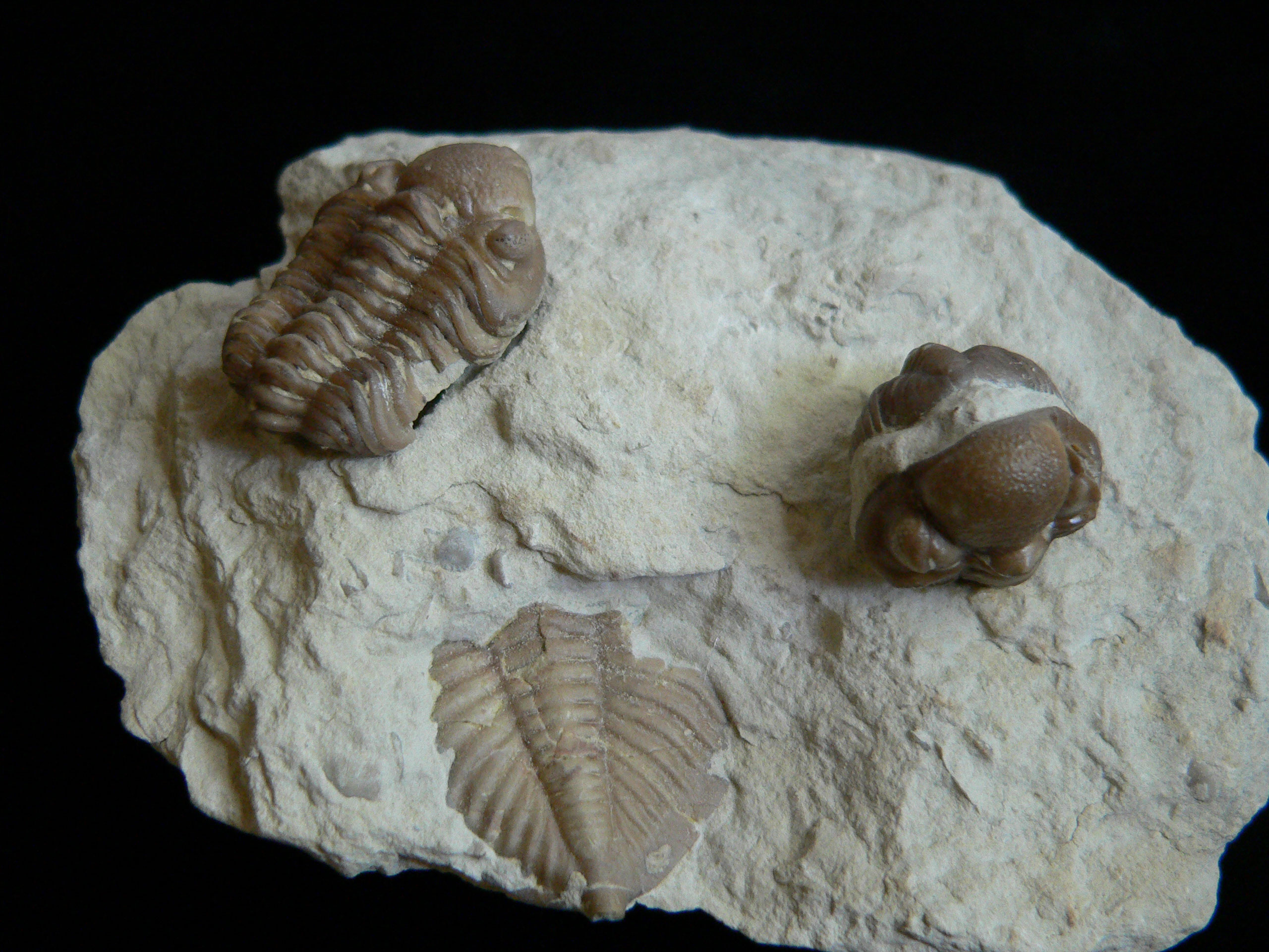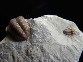 2 Kaniops invius specimens with a partial Huntonia oklahomae on natural matrix Class Trilobita Walch 1771