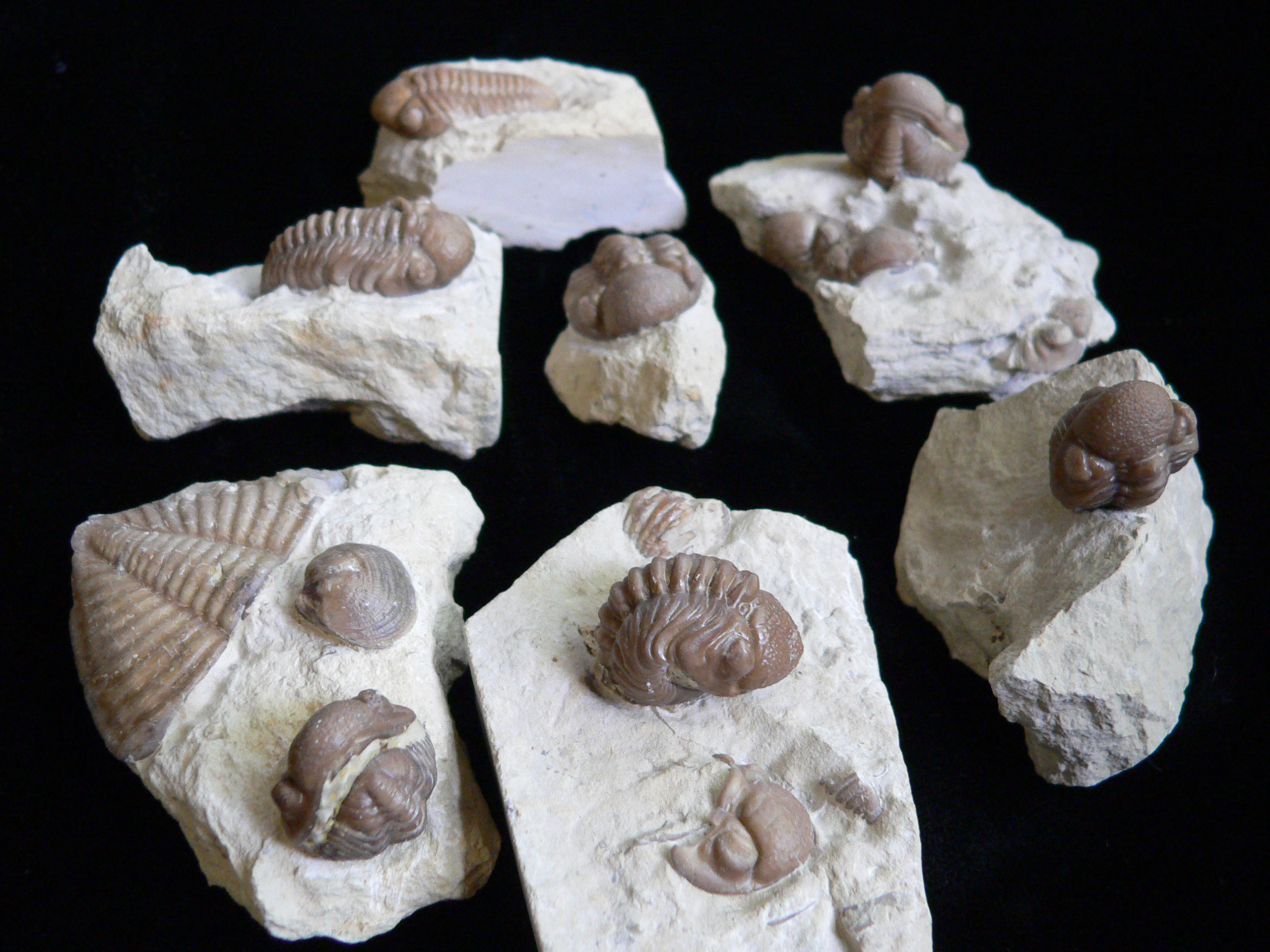 Carefully separated into 9 groups (a through i) by preservation detail and specimen quality When ordering please specify if you prefer 1) rolled or unrolled trilobites and 2) with or without marix You may request a specific trilobite from a group photo. This is best done by sending a copy of the group jpeg below in your email and circle the one(s) you wish to purchase. Click on photos to enlarge |